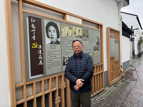紅色基因傳承環(huán)節(jié)成為當(dāng)日亮點(diǎn)。黨總支書記陳熱豪同志帶領(lǐng)黨員同志走進(jìn)丁香巷,在青石板路上講述“雨巷詩人”戴望舒筆下丁香姑娘的原型——革命烈士白丁香的傳奇故事。駐足丁香巷,書記說:“1932年,22歲的白丁香在雨夜為傳遞情報(bào)犧牲,這條巷子因她有了浪漫與熱血的雙重底色?!蹦贻p黨員皆感慨:“原來詩意江南的背后,藏著這么多可歌可泣的紅色記憶?!?/p>